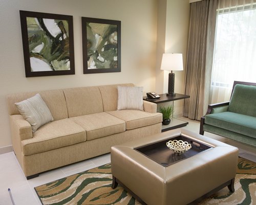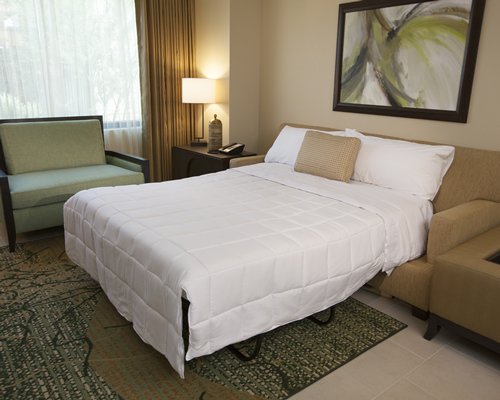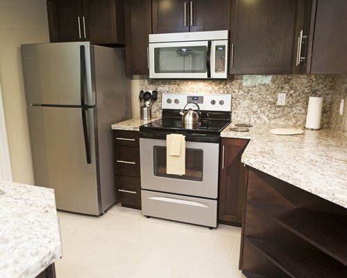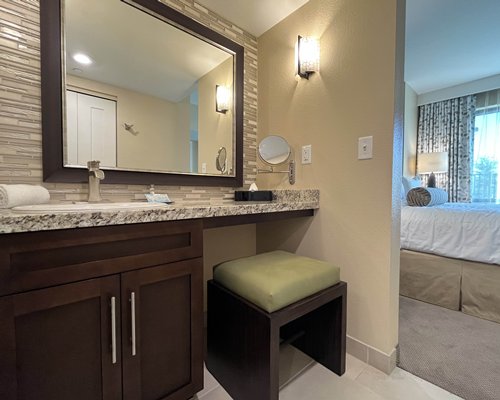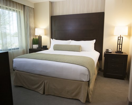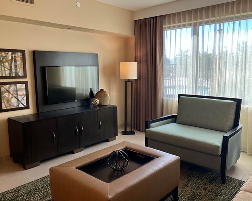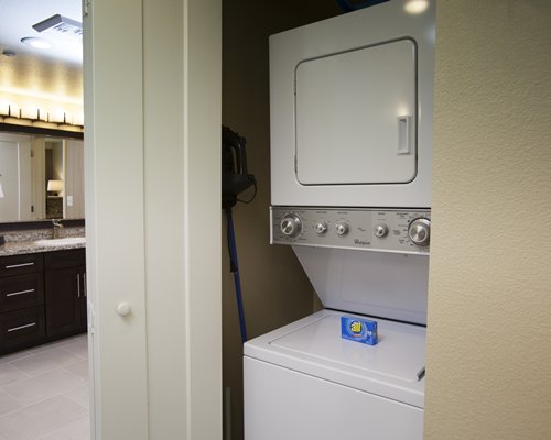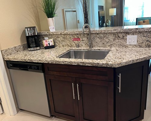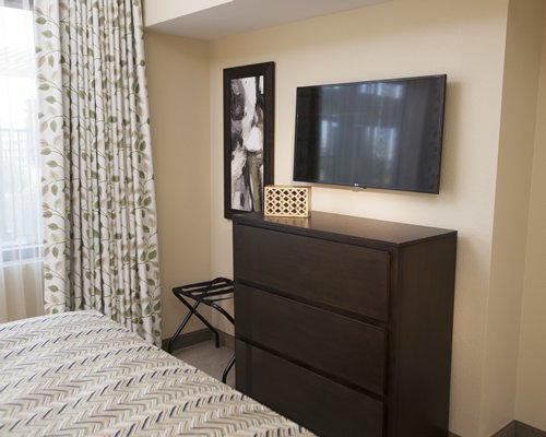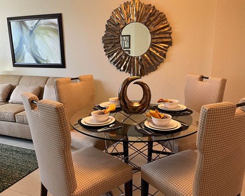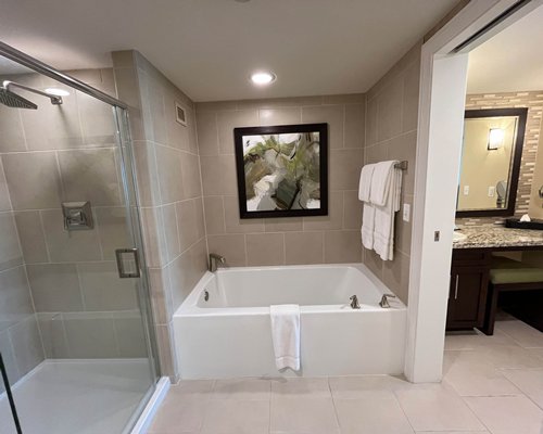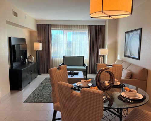 The Berkley, Las Vegas, offers spacious and beautifully decorated one and two-bedroom suites designed to provide maximum comfort and enjoyment, whether you're looking to unwind or entertain your family and friends. The suites have well-appointed kitchens, a living room with a queen sleeper sofa, and a dining area. The bathroom can be accessed from two sides and has a bathtub, a separate walk-in shower, and a separate vanity area. The living room has a 49-inch HD TV, and the bedroom features a 40-inch HD TV with cable and premium channels. The suites have a washer and dryer, air conditioning, and in-room Wi-Fi to make your stay as convenient and comfortable as possible.